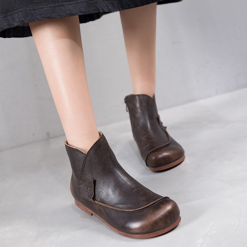 Retro Lederen Handgemaakte Comfortabele Enkellaarsjes | Cadeau Schoenen